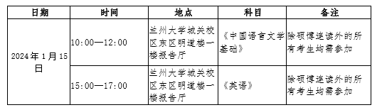 注:1.同等学力考生的加试考场另行安排;2.考生参加笔试时请开考前15分钟到达指定考场,出示本人身份证件方可入内。开考后迟到15分钟及以上者,不能进入考场。进入考场后,请严格遵守考试纪律,听从监考老师管理,严禁作弊。